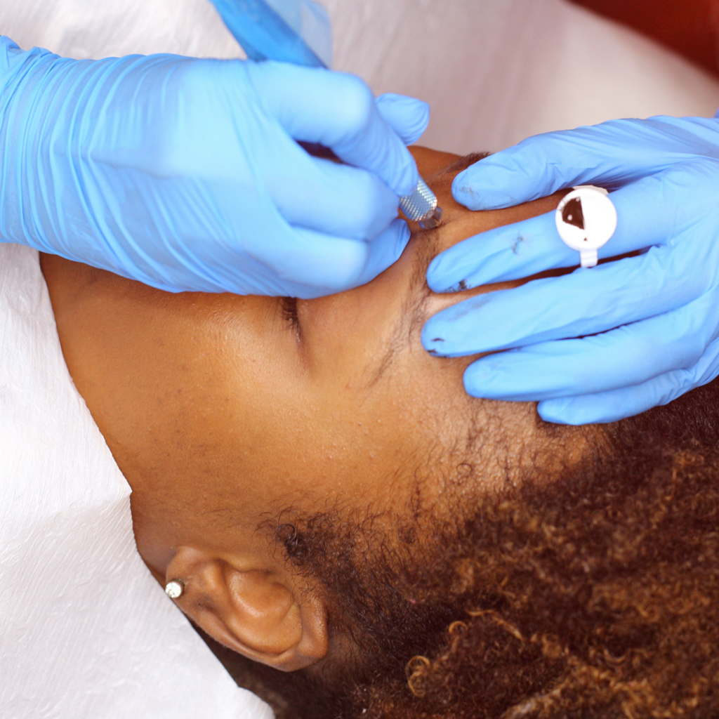 A semi-permanent cosmetic tattoo technique that uses pigment to create a gradient effect on eyebrows. The result is fuller, more defined brows with a soft, powdered look.