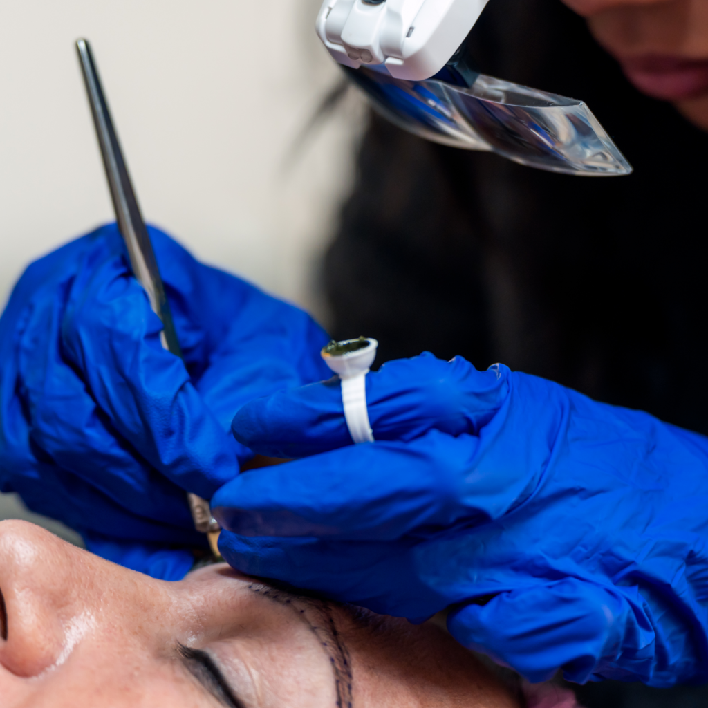 A semi-permanent cosmetic tattoo technique that uses pigment to create a gradient effect on eyebrows. The result is fuller, more defined brows with a soft, powdered look.